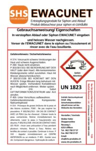 - Die chemische Formel des SHS EWACUNET ist speziell für die Beseitigung von hartnäckigen Verstopfungen entwickelt worden. Sie wirkt schnell und zuverlässig, um Ihre Abflüsse wieder frei zu bekommen.