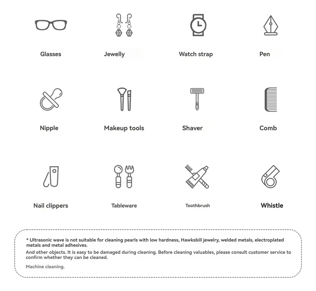 Mit einer Kapazität von 350 ml ist das Gerät kompakt, leicht zu verstauen und ideal für den täglichen Gebrauch. Ob zu Hause oder im Büro – reinigen Sie Brillen, Schmuck, Zahnprothesen, Münzen oder Metallteile jederzeit effizient und sicher.